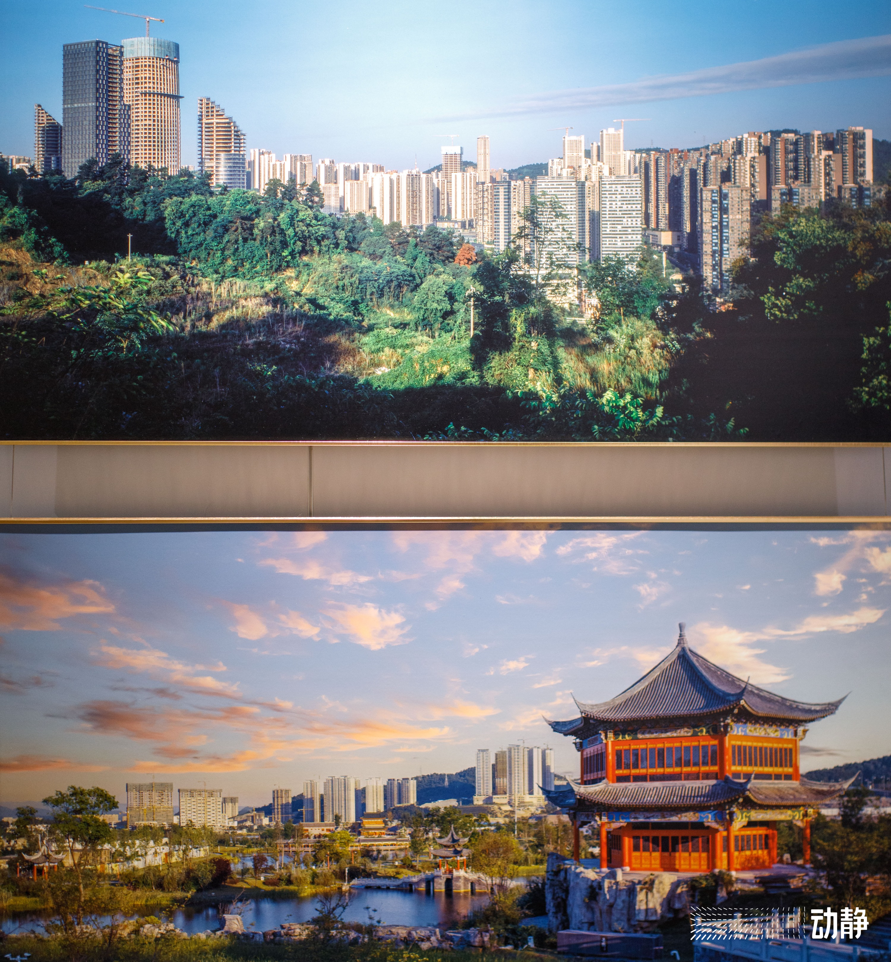 在展览上,你可以看到潘维明所拍摄的贵州省各地的乡镇景色,以及省会城市贵阳花果园、观山湖区的地标性建筑、绿色所环绕的贵阳城市风光……这些作品,记录了贵州城乡42年的变迁。