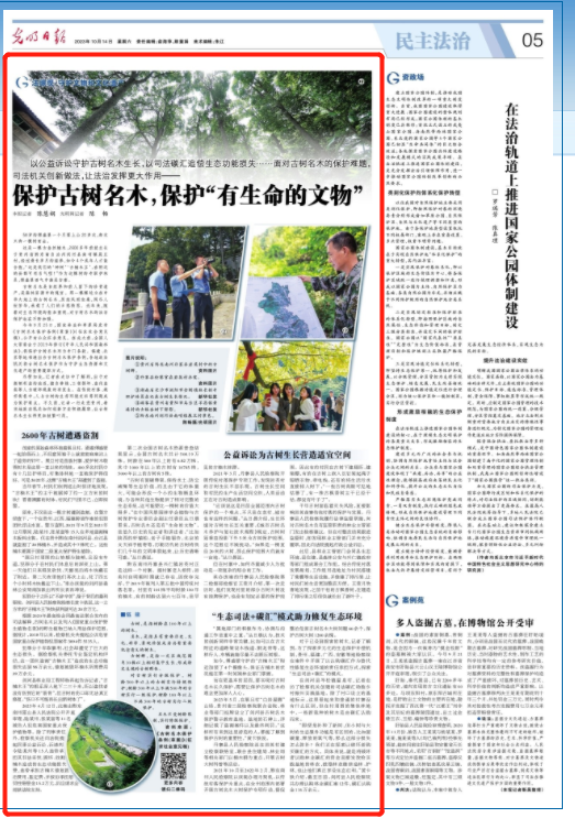 今年9月25日,国家林业和草原局发布《古树名木保护条例(草案)》(征求社会意见稿),公开向公众征求意见。在此之前,全国人大常委会于2019年修订《中华人民共和国森林法》,将保护古树名木列为专门条款。福建、北京等地相继出台古树名木保护条例,各地政法机关将古树名木保护作为守护生态资源和文化遗产的重要履职方式。