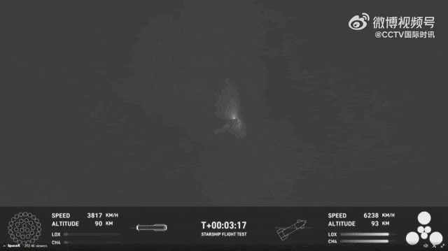 在试飞直播中,火箭成功升空,并在两级分离后出现了“快速计划外拆卸”,即超重型助推器爆炸,但似乎并未影响到已经分离的“星舰”。在火箭发射后15分钟左右,任务控制中心与“星舰”失去联系。据太空探索技术公司一名工作人员表示,“星舰”似乎已经爆炸,尚不清楚问题所在。