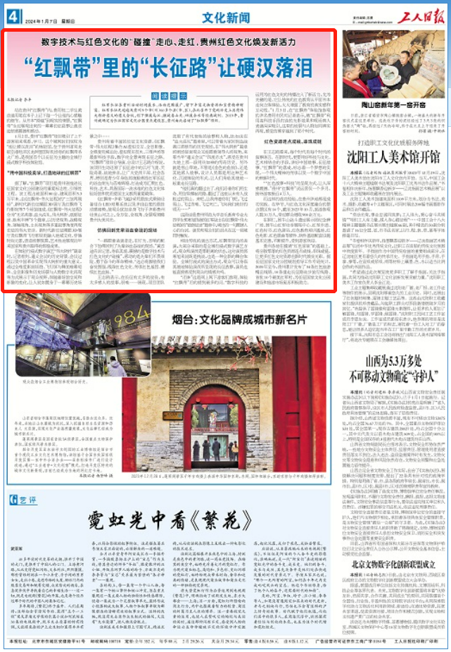 贵州有着丰富的长征文化资源。《红飘带·伟大征程》集合AI虚拟交互、全息影像、全维度机械运动、虚拟现实技术、三维声场等最新科技手段,数字化全景再现长征之路。“红飘带”项目总导演、总设计王志鸥介绍说,该项目生动还原了长征途中的江河飞渡、天险奇袭、战地拼杀,让广大党员干部、社会各界,特别是青少年身临其境般感悟红军长征的浴血荣光与苦难辉煌,打造成为汇聚红色、科技、艺术,具备国际一流水准的红色文化体验场馆和优质爱国主义教育重要载体。