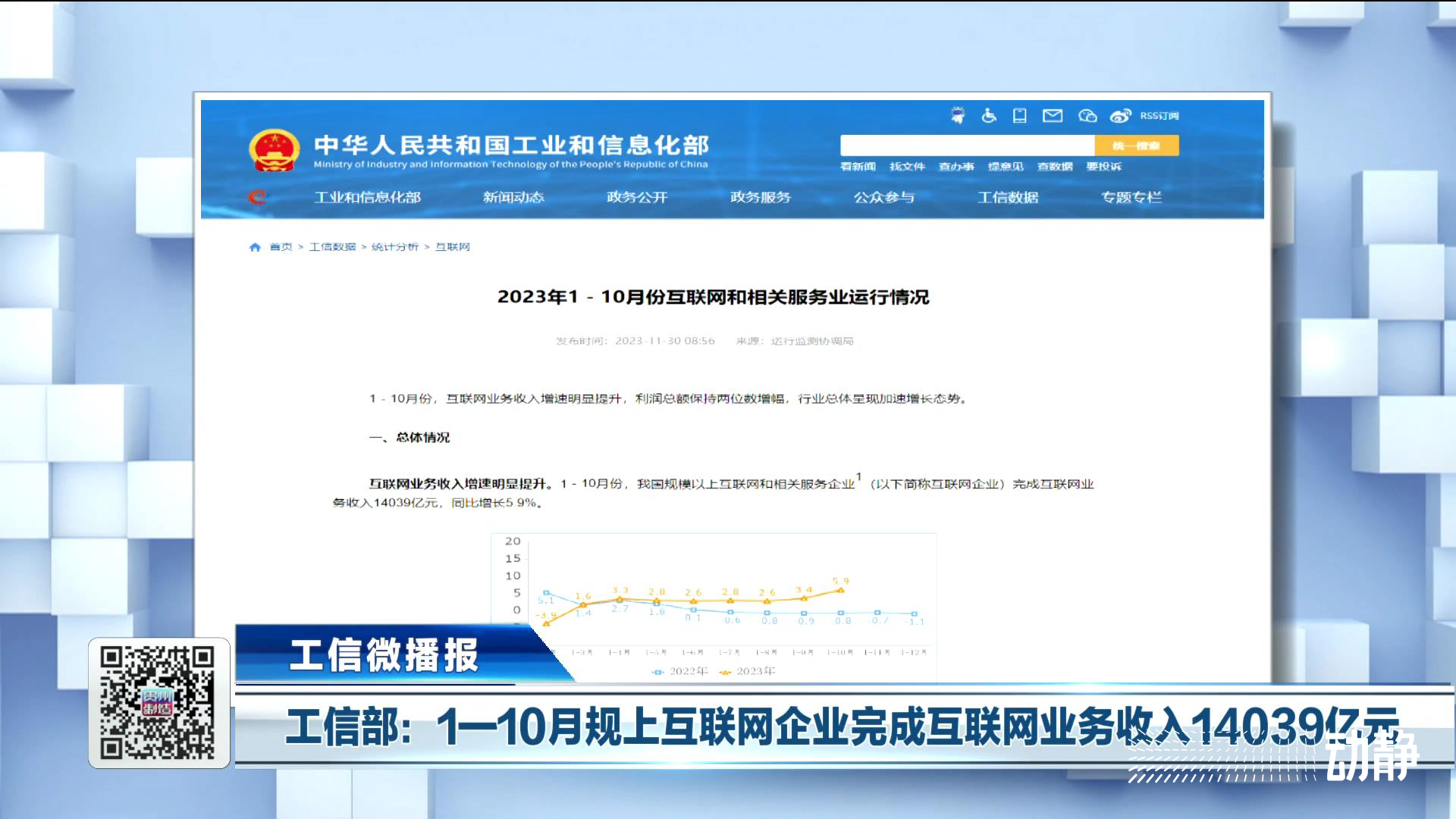 工信部:1—10月规上互联网企业完成互联网业务收入14039亿元