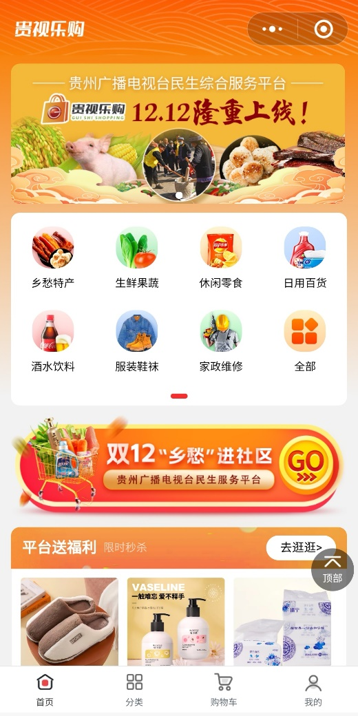 贵视乐购系贵州广播电视台地方站管理部与贵州楷耀大数据投资运营股份有限公司联合打造的社区团购平台,以“产地直供+优特产品+品优价廉”的模式为消费者提供“社群+团购”的一站式服务。