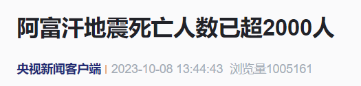 当地时间10月8日,据阿富汗临时政府方面消息,7日发生在该国西北部的地震目前已造成超过2000人死亡,另有近万人受伤,逾千所房屋被毁。