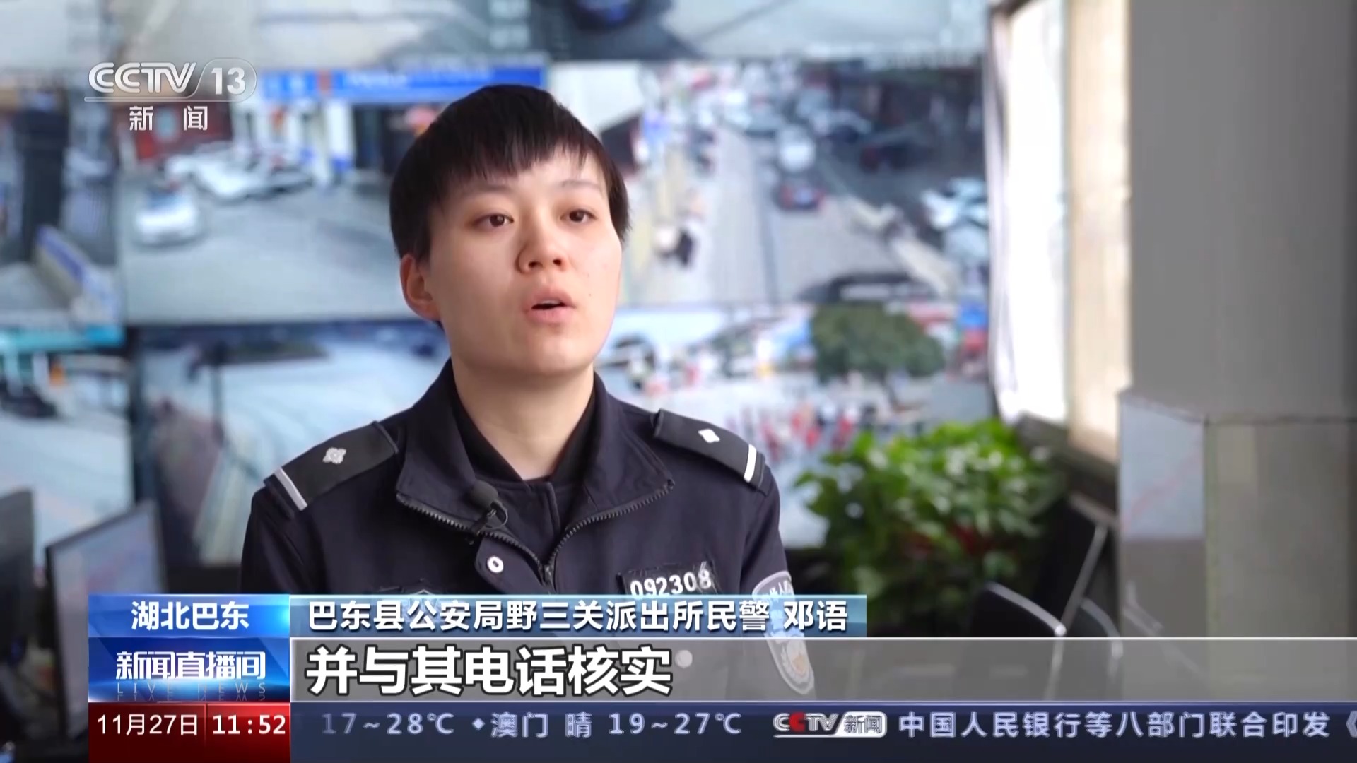 巴东县公安局野三关派出所民警 邓语:我们通过调查走访,迅速确定失主谭某身份,并与其电话核实,确认确实是他自己转错钱的。