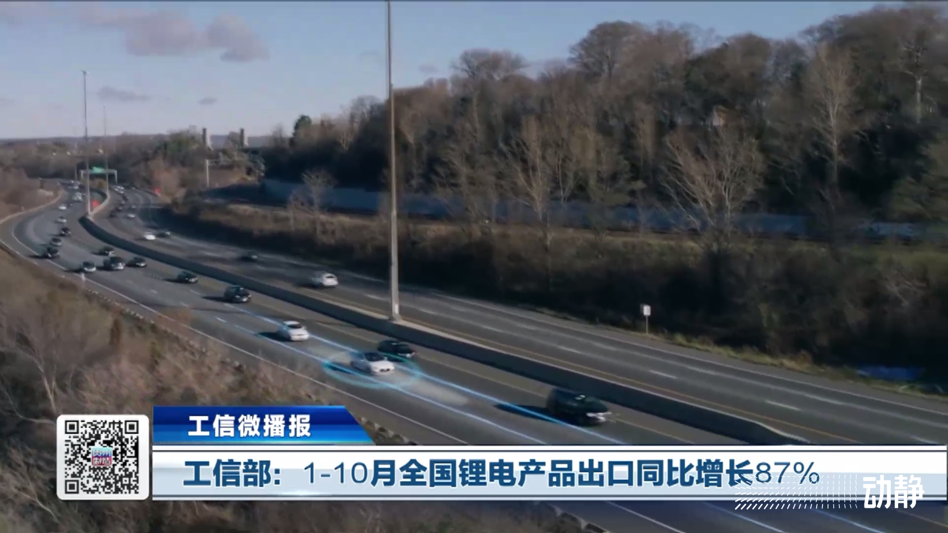 工信部数据显示,今年1至10月,我国锂离子电池行业持续快速增长,根据行业规范公告企业信息及研究机构测算,1至10月全国锂电总产量超过580GWh,动力电池装车量约224GWh,锂离子电池产品出口同比增长87%。