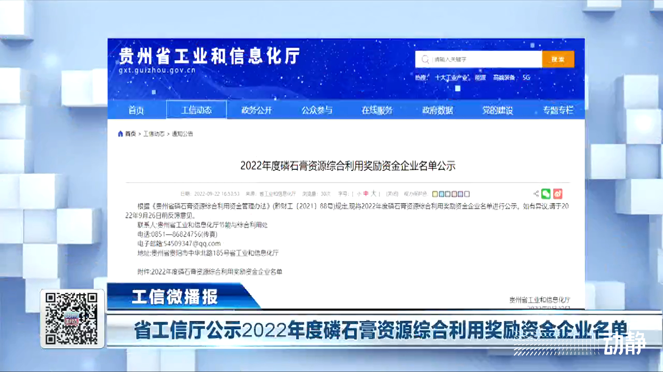 省工信厅公示2022年度磷石膏资源综合利用奖励资金企业名单