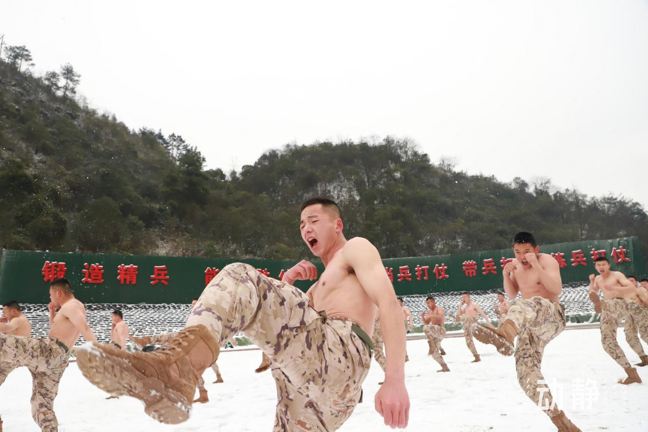为不断锤炼官兵在各种恶劣环境下的适应能力,武警贵州总队黔南支队抓住大雪低温练兵时机,结合实战实训特点,在雪地里开展刺杀、格斗以及力量训练。