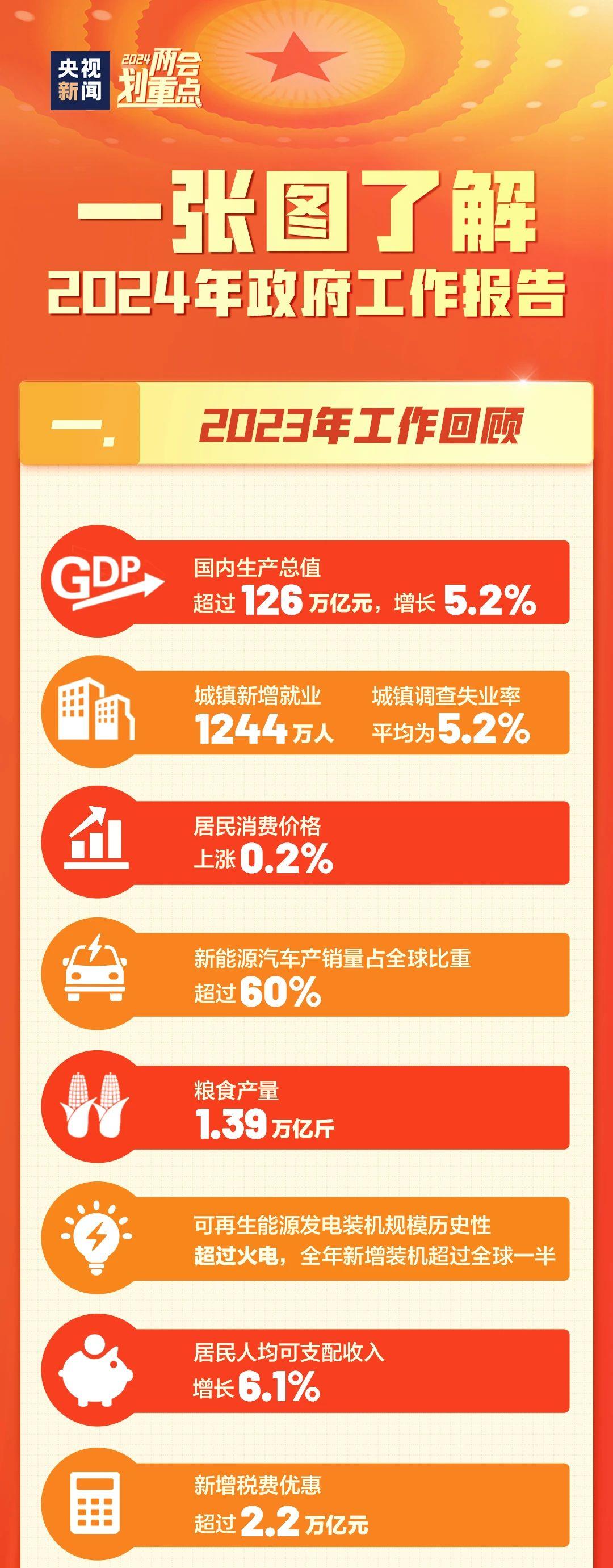政府工作报告丨经济总体回升向好 2023年国内生产总值超过126万亿元