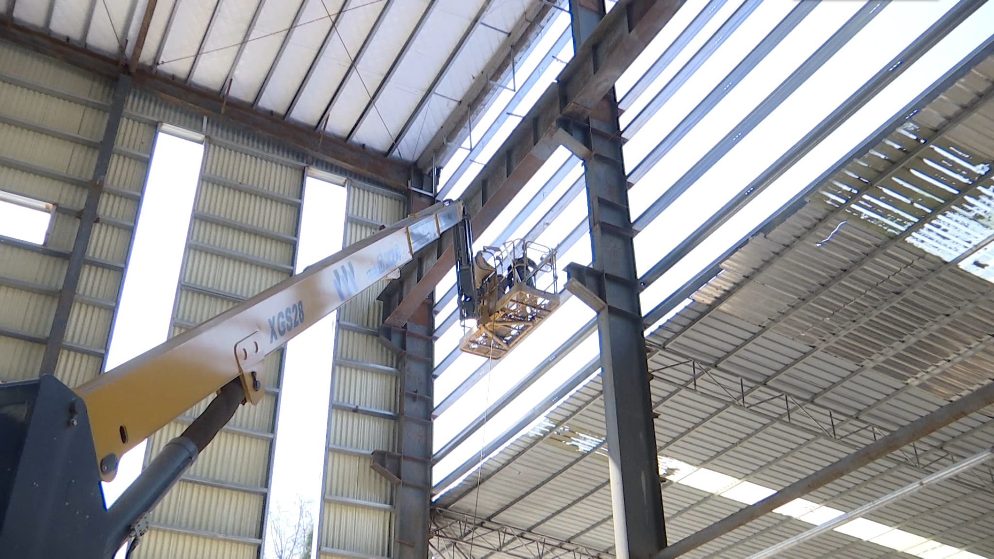 施工工人张文利说:“我们现在做的是整个车间的墙面背通,现在正在加紧施工,预计是在半个月左右完工。”