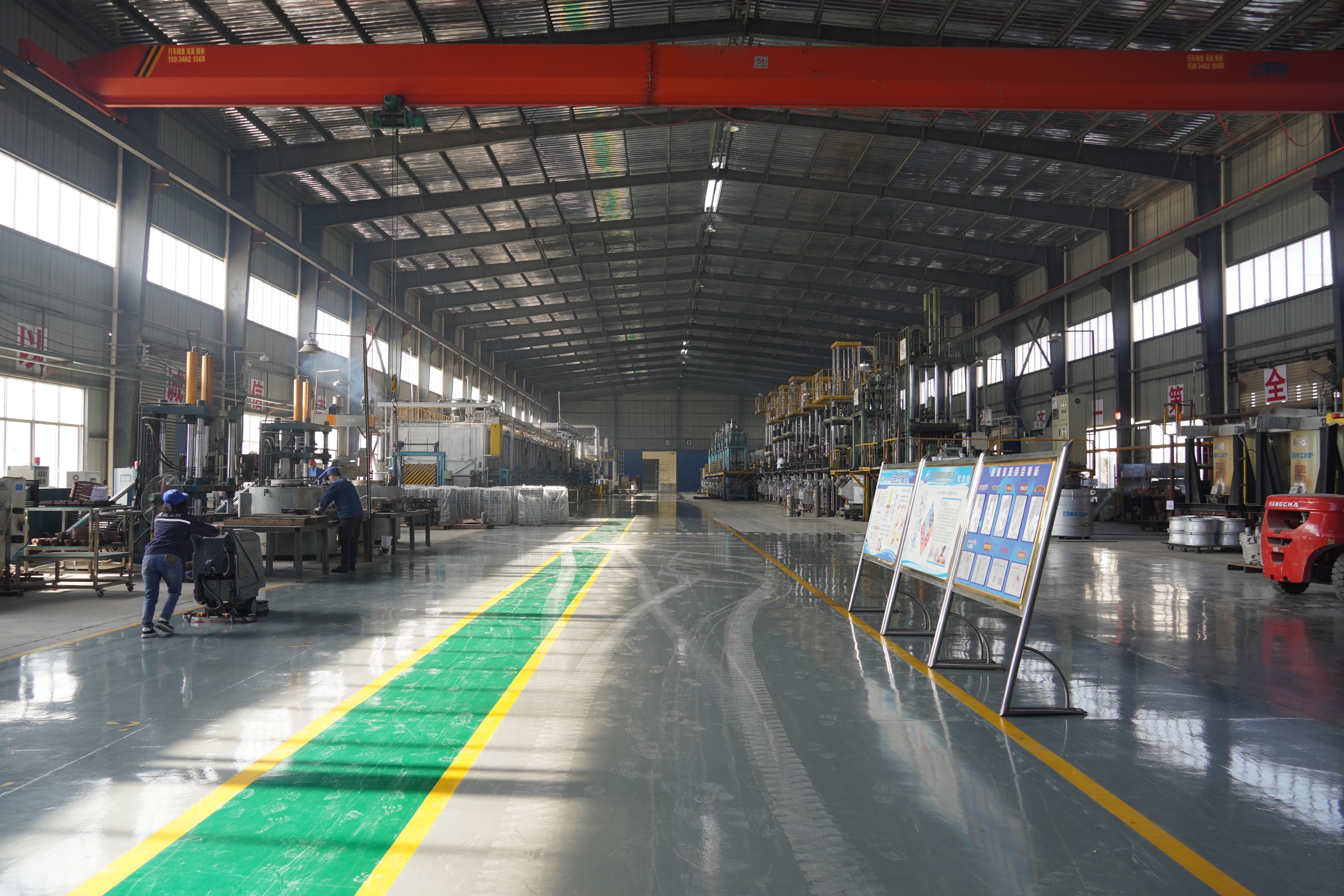 公司低压铸造车间主管姚承鸿说:“今天早上8点钟我们准时复工复产,现在开启了14台机,优先装的模具是21寸的大尺寸产品。”
