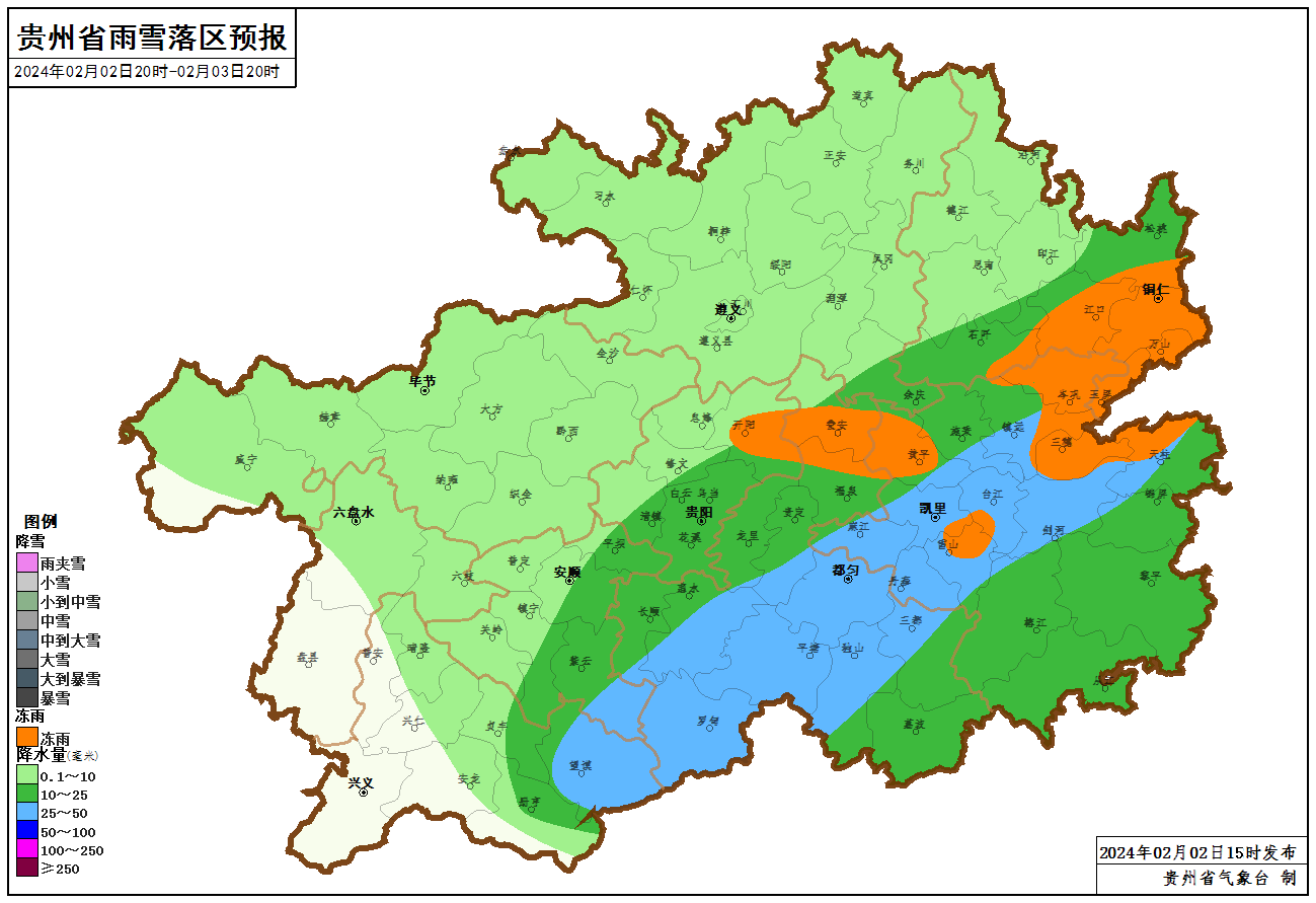 今天夜间到明天白天,省的西南部晴到多云,其余大部地区阴天有小到中雨,铜仁市和黔东南州局部有冻雨或雨夹雪,东南部有大雨,午后到夜间,省的西南部局地有雷暴大风、小冰雹等强对流天气,省的中部以西以南地区气温下降4-8℃;