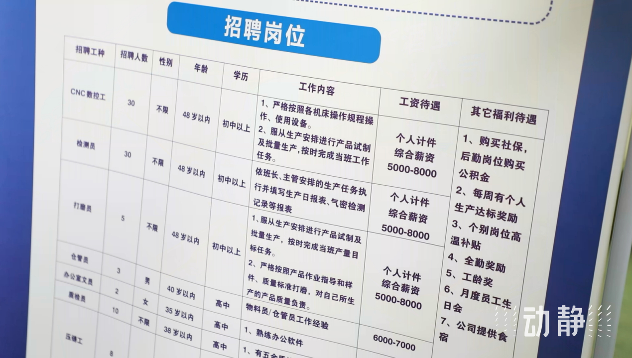佛山市三水区招工团这次带来了十多家企业,800多个岗位。招聘条件较往年相比,也提高不少。不仅食宿条件有所改善,月薪也能提高到接近1万元。