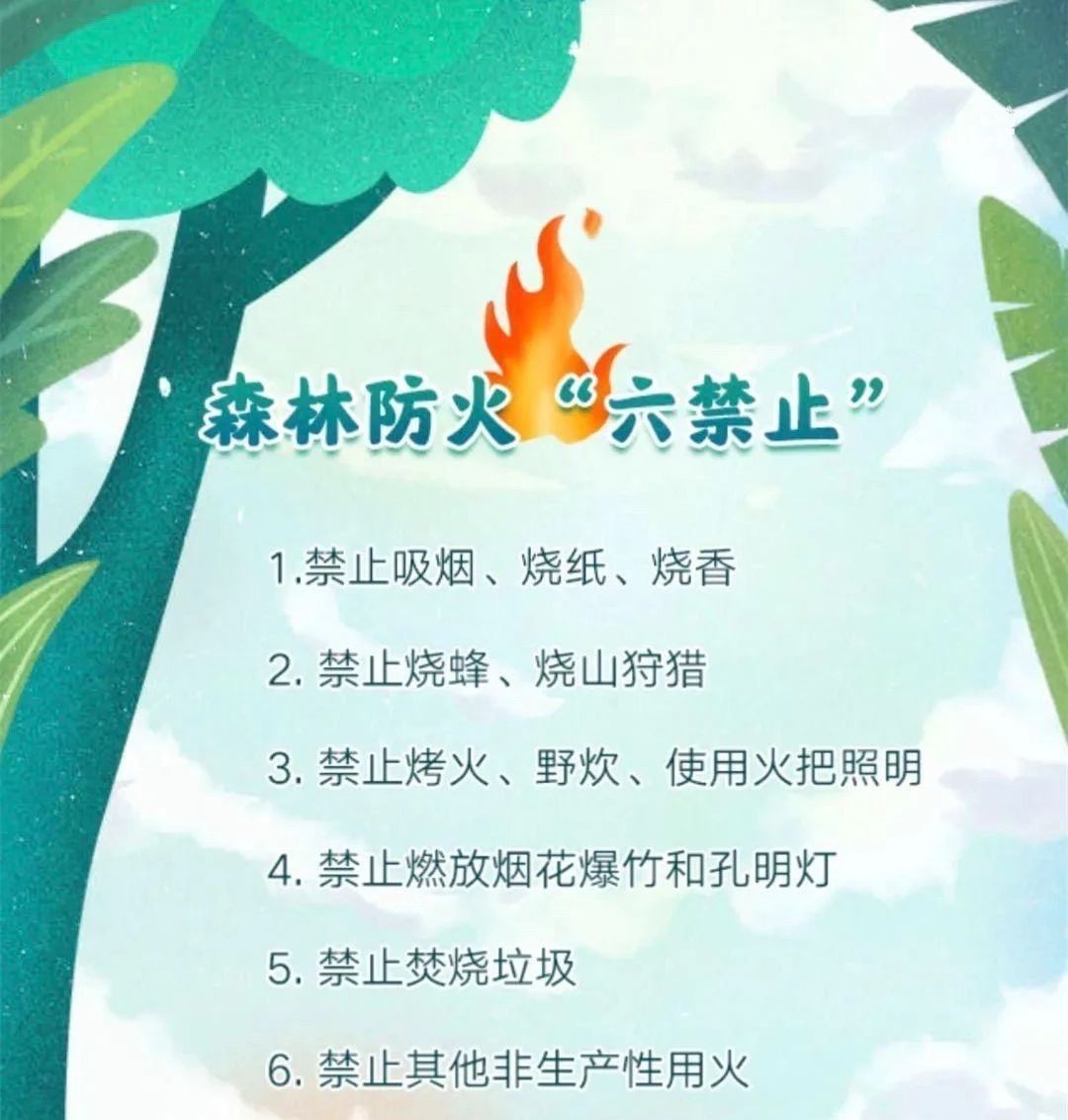 也不要在林区吸烟、用火把照明