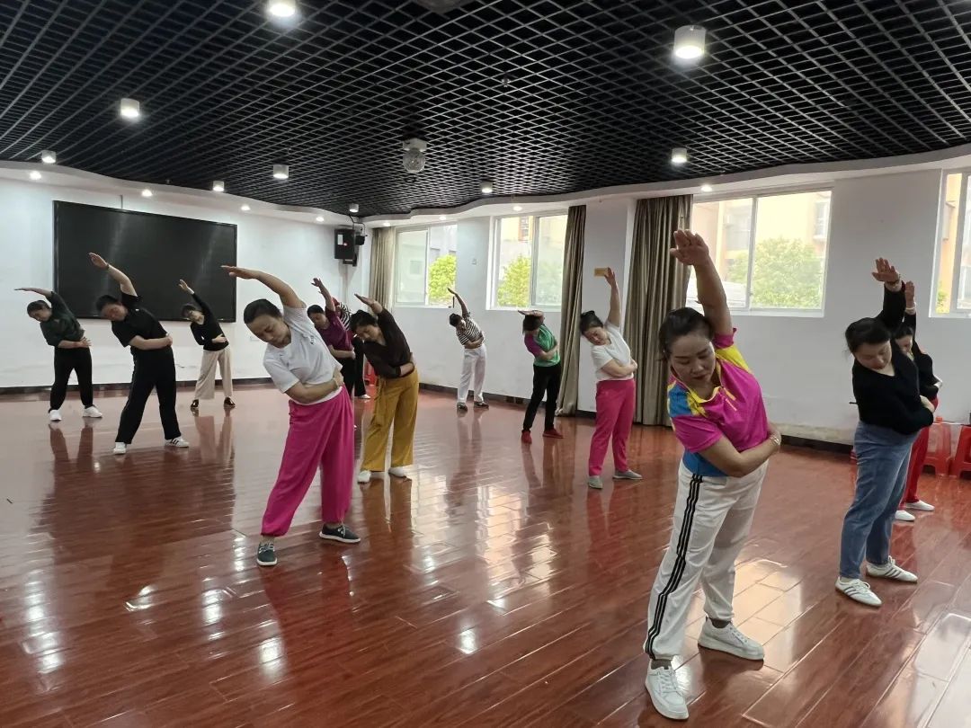 音乐教室里歌声嘹亮,舞蹈教室里则是另一番“热闹”景象。在领舞老师的带领下,学员们正伴随着音乐翩翩起舞。