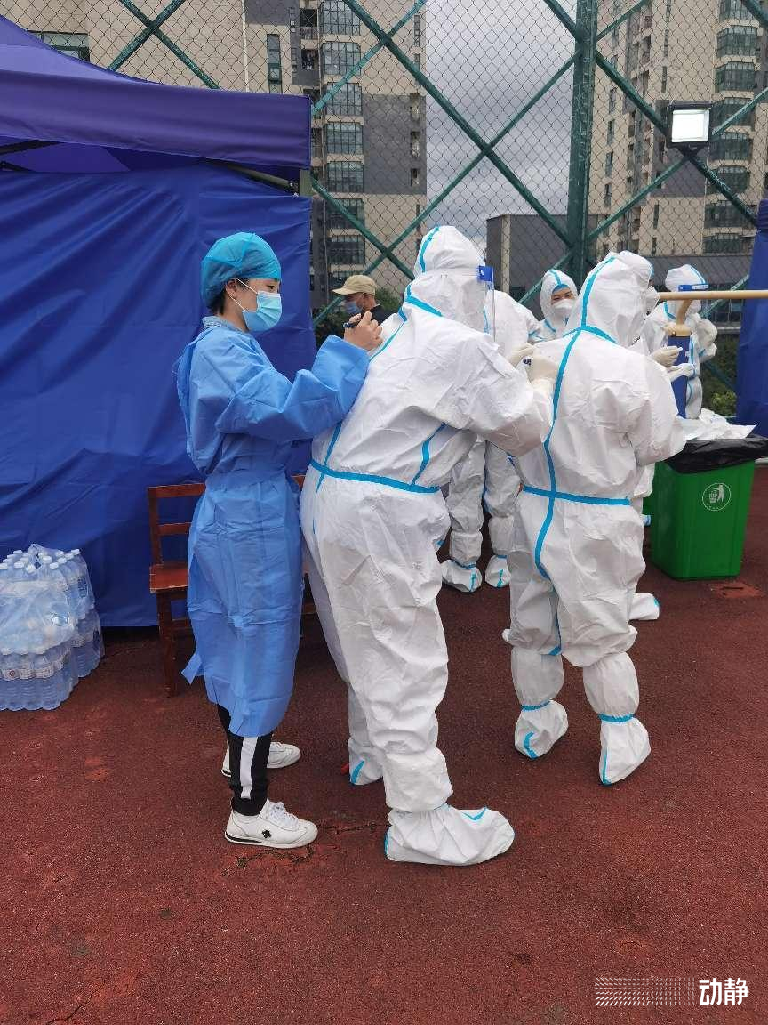 疫情就是命令,还在休婚假的听力科在读博士王志鹏医生,接到电话立刻收拾行李,仅给自己的爱人发了一条信息:“媳妇,我去花溪了,你好好照顾自己哈”,就背上背包,悄悄出门了。由于时间紧急,怕赶不上医院的大巴,他就自己骑电瓶车三十多公里,冒着毛风细雨,赶到花溪大学城与核酸采集队汇合。到达现场后,他迅速投入采样工作,当天即工作到凌晨2点半才回驻地休息。