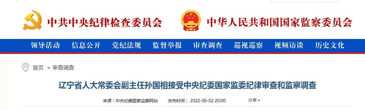 据中央纪委国家监委网站消息,辽宁省人大常委会副主任孙国相涉嫌严重违纪违法,目前正接受中央纪委国家监委纪律审查和监察调查。