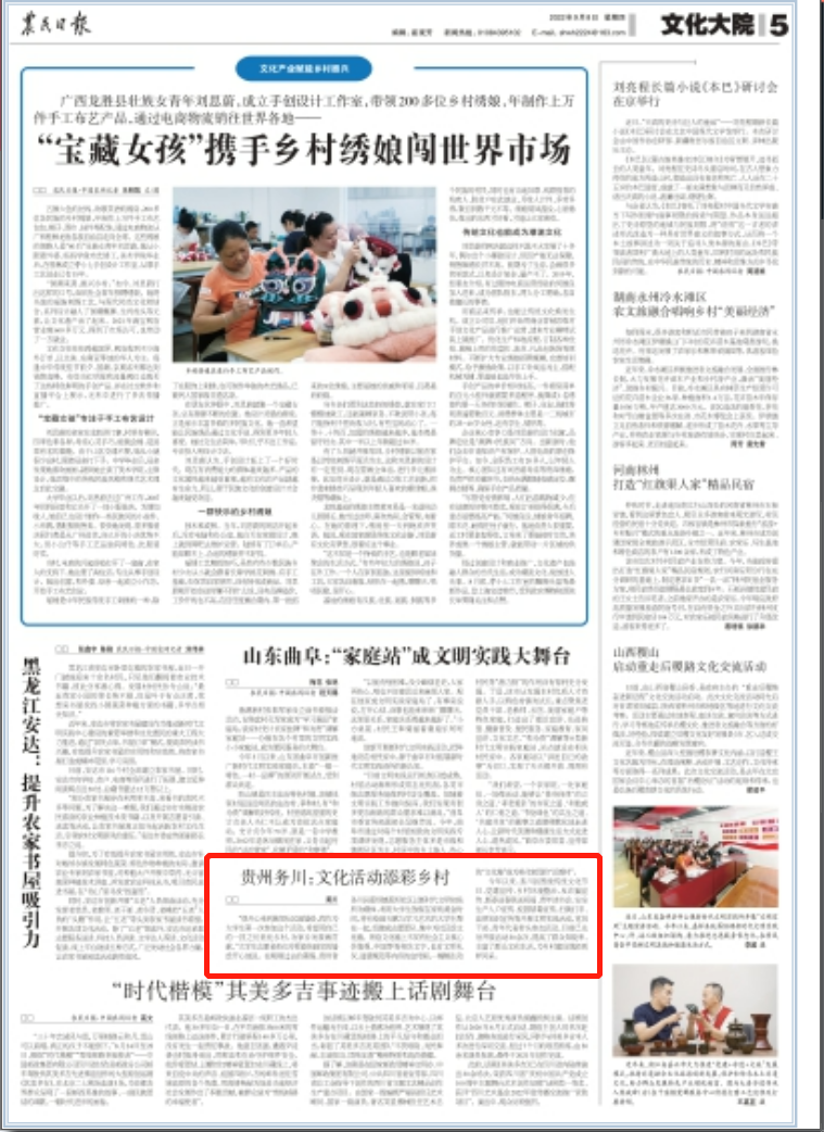 今天(9月8日),《农民日报》刊发新闻《贵州务川:文化活动添彩乡村》。