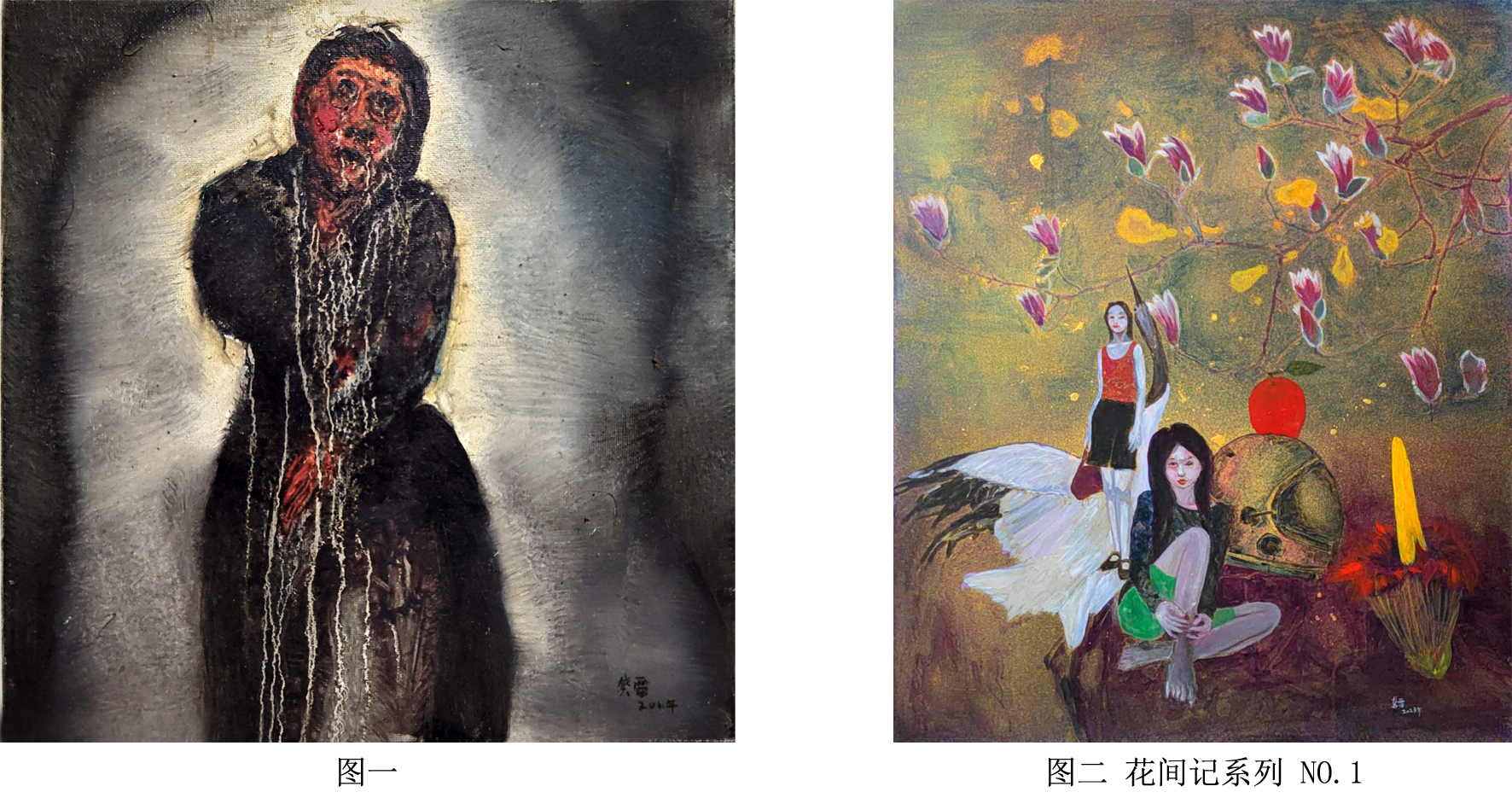 龚雷的绘画创作从一开就有着这种超现实主义倾向,只不过他并没有用理性的绘画语言去呈现那些对自身潜意识的理性反思,因而更像是一种表现主义的画风。然而,当我们去细品那些表现性语言最终讲述的主题时,会感受到某种宗教式的庄严感(图一)而非个体的情调。这种庄严感更容易让人想起达利的《内战的预感》,而不是蒙克(Edvard Munch)的《呐喊》。这样说仍然不是为了要将龚雷归类到历史类型中去,而是意在建立一个理解其新近作品的起点。