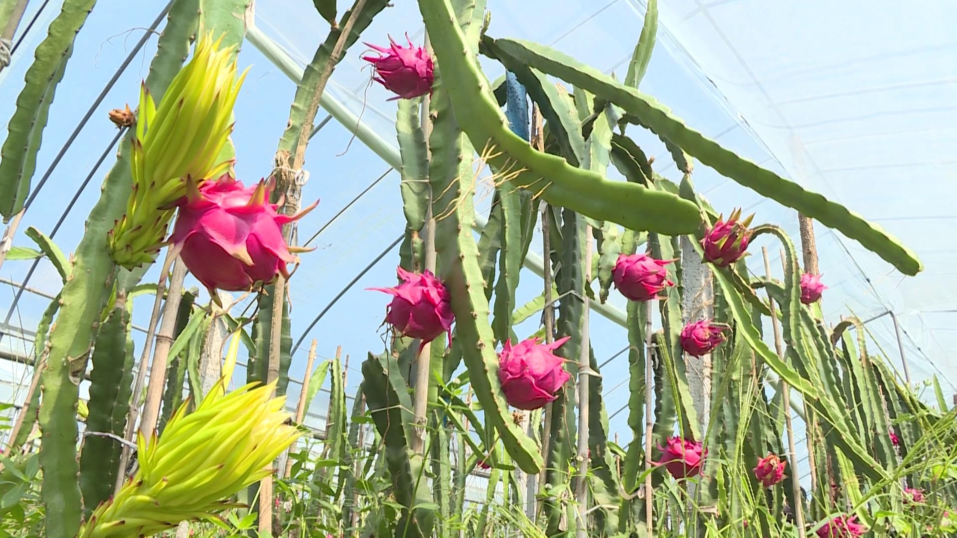 这段时间,火龙果基地果香扑鼻,红红的火龙果缀满枝头。常有游客来采摘体验,大家对火龙果赞口不绝。