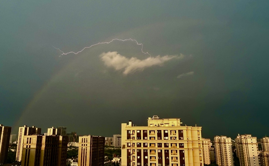 北京日报客户端记者在大兴区亦庄镇用镜头捕捉到了彩虹与闪电的“亲密同框”,一起来看!