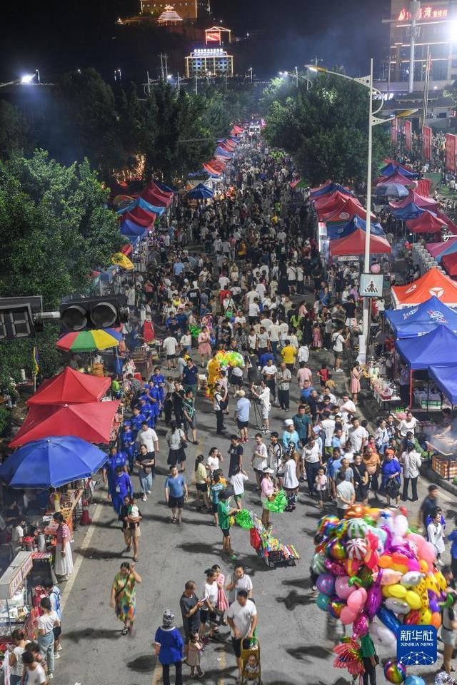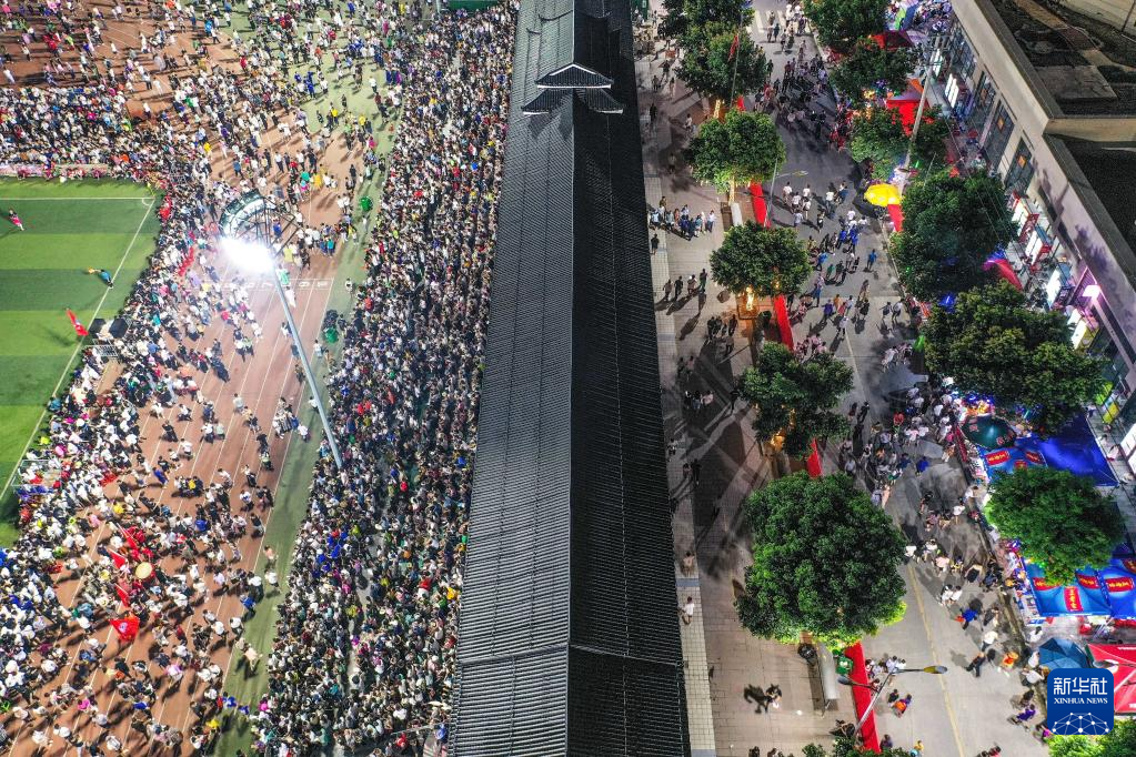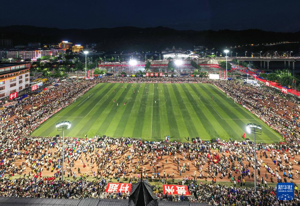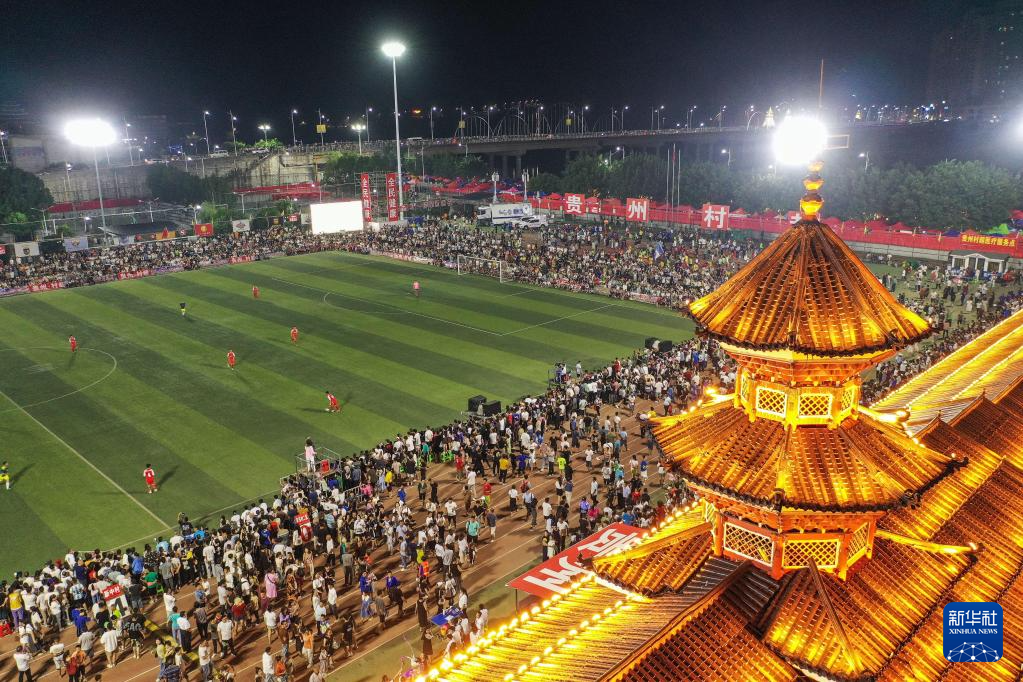7月1日,人们在贵州“村超”足球赛场旁的集市游玩。 自今年5月贵州“村超”足球赛开赛以来,贵州省黔东南苗族侗族自治州榕江县吸引了全国各地大量游客前往观赛游玩,带动了当地旅游、餐饮、住宿、文创、农特产品等行业的经济发展。 据榕江县政府统计,“村超”举办的一个月时间内吸引游客42万余人次,其中本地游客30.39万人次,外地游客11.61万人次。今年5月,榕江县接待游客107.37万人次,同比增长39.73%,实现旅游综合收入12.41亿元,同比增长52.08%。