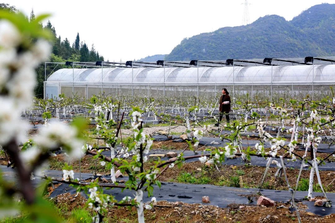 近日,在贵州省安顺市平坝区安平街道喜客泉村五里组车厘子种植基地,近千株车厘子树花开烂漫,绽放出浓浓春意。