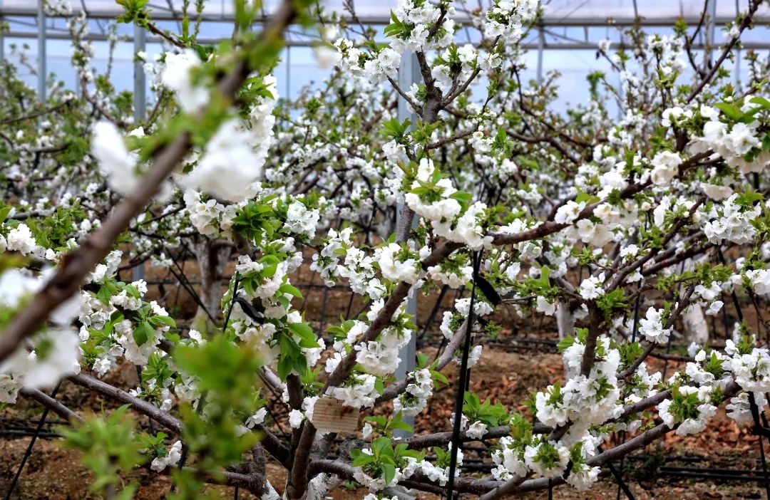 经过精心管护,今年该基地近千株车厘子树长势良好,花繁叶茂,除了160余株九年苗之外,其余的800多株今年也将陆续挂果,预计5月中旬可以采摘。