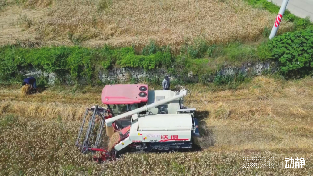 小满也是夏收时节。走进思南县许家坝镇万塘村,沉甸甸的麦穗泛起金黄色的麦浪,一派丰收繁忙景象。当地投入了两台收割机,每天能够作业70亩左右,极大降低了老百姓的劳动强度。