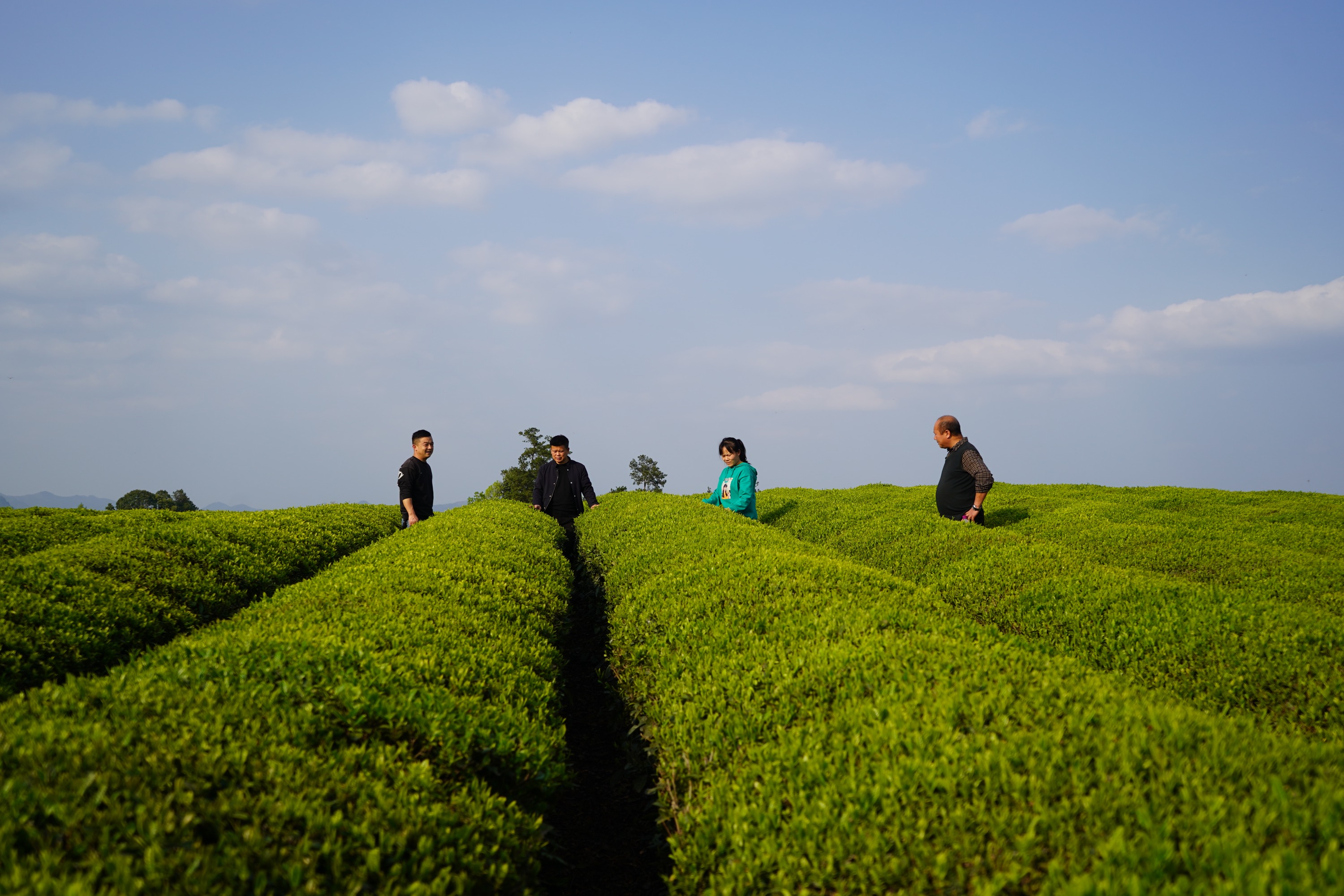 在该村野牛塘的绿茶基地,一畦畦茶树青翠碧绿,茶香四溢。