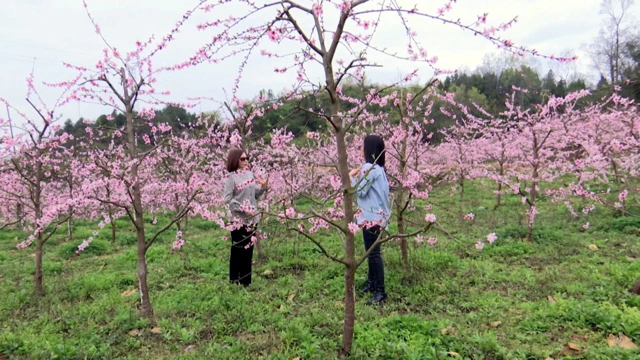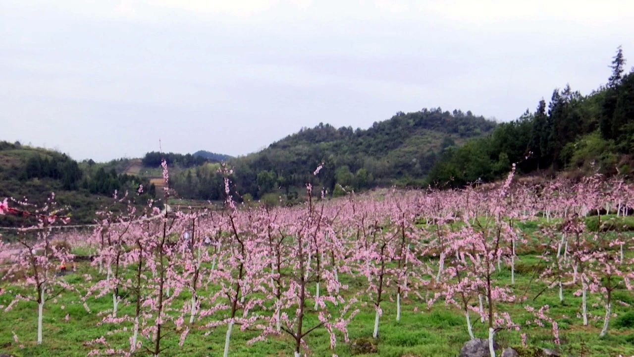 眼下,正是桃花盛开的时节,在遵义市凤冈县何坝街道林光社区的黄桃种植基地里,满山遍野的桃花开满枝头,桃林间果农们正在进行桃园管护,游客们也不停地拍照留影,尽情享受春天的美景。