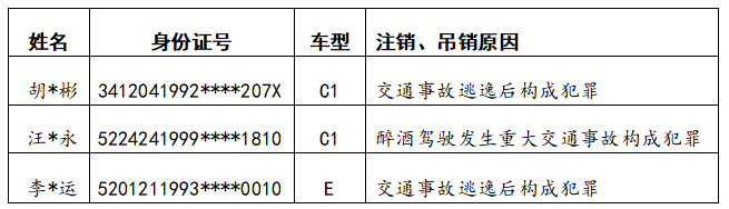 2023年第一季度,以下3名违法驾驶人被终生禁驾。