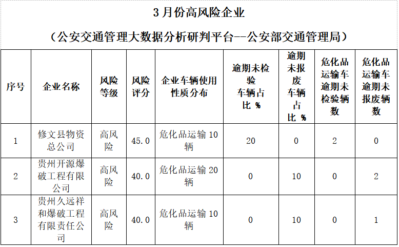 经分析研判,现将全市2023年3月份高风险危险货物运输企业交通违法综合画像评分上升(黑榜)的通报如下: