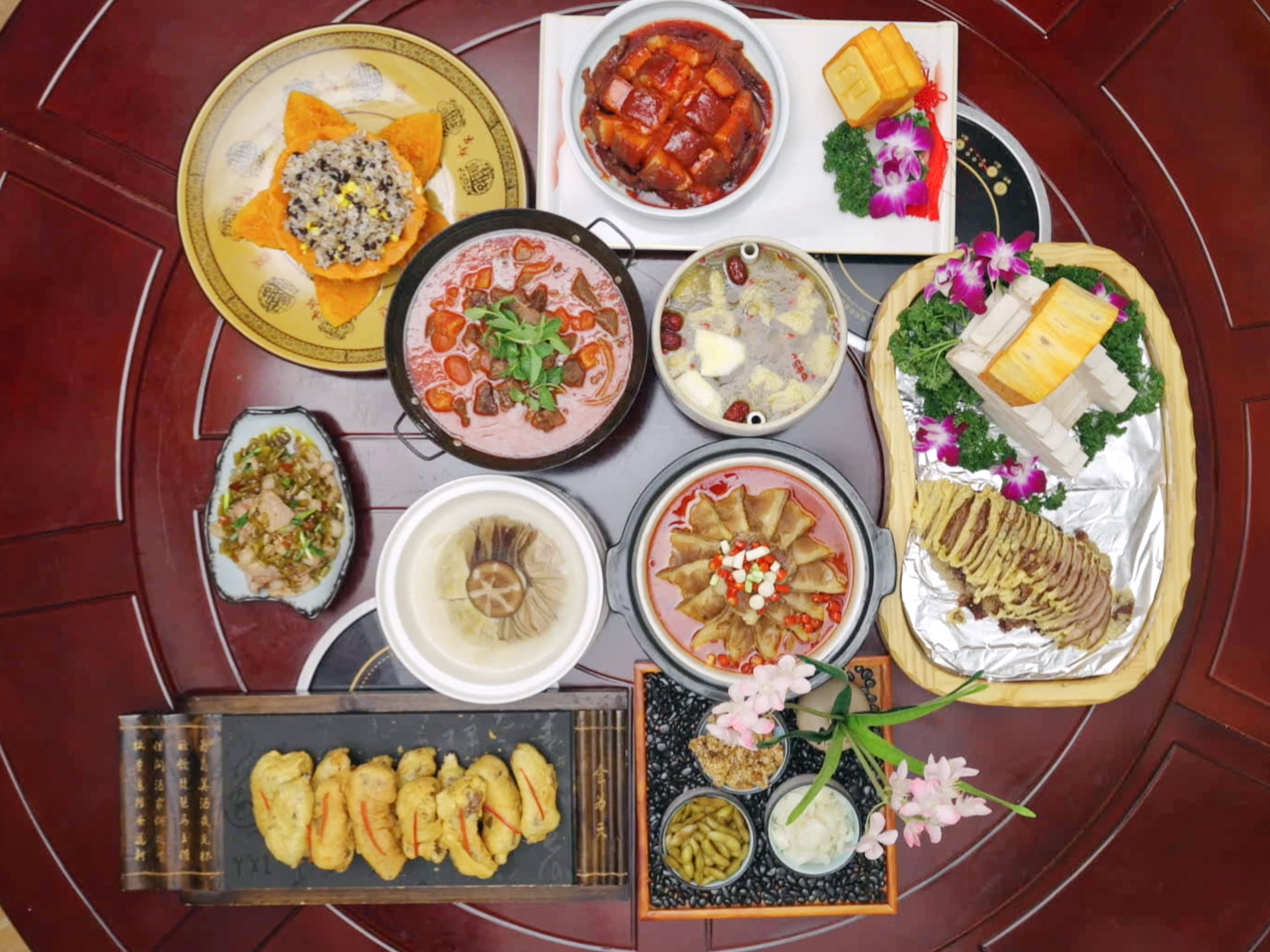 播州土司菜、遵义八大碗、赤水全竹宴、乌江豆腐鱼、仁怀三把鸡、遵义羊肉粉、仡佬三幺台等各类美食荟萃、五味汇聚。传统佳肴、民族特色、风味小吃等多种菜品构成了遵义独树一帜的饮食文化,形成一道靓丽的美食风景。置身其中,不仅能体验到味蕾的极致口感,更能感受到遵义烟火中的江湖气。