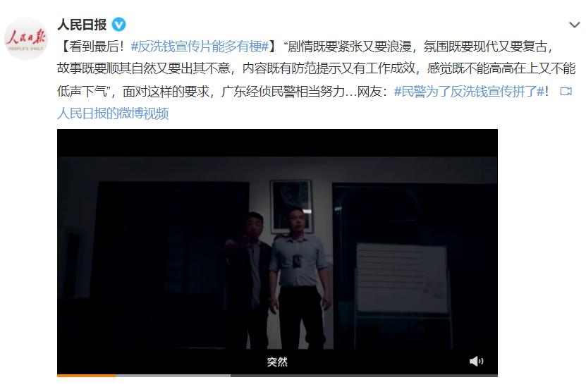 “剧情既要紧张又要浪漫,氛围既要现代又要复古,故事既要顺其自然又要出其不意,内容既有防范提示又有工作成效,感觉既不能高高在上又不能低声下气”,面对这样的要求,广东经侦民警相当努力……网友:民警为了反洗钱宣传拼了!