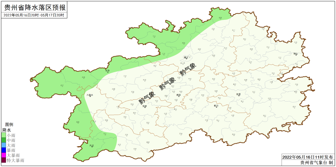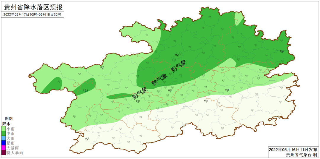 省的中部以北地区个别乡镇有暴雨。