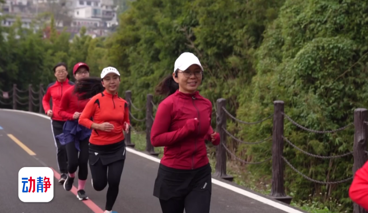 在万峰林康养跑道,郎荣淑和跑友们刚完成一场酣畅的跑步。