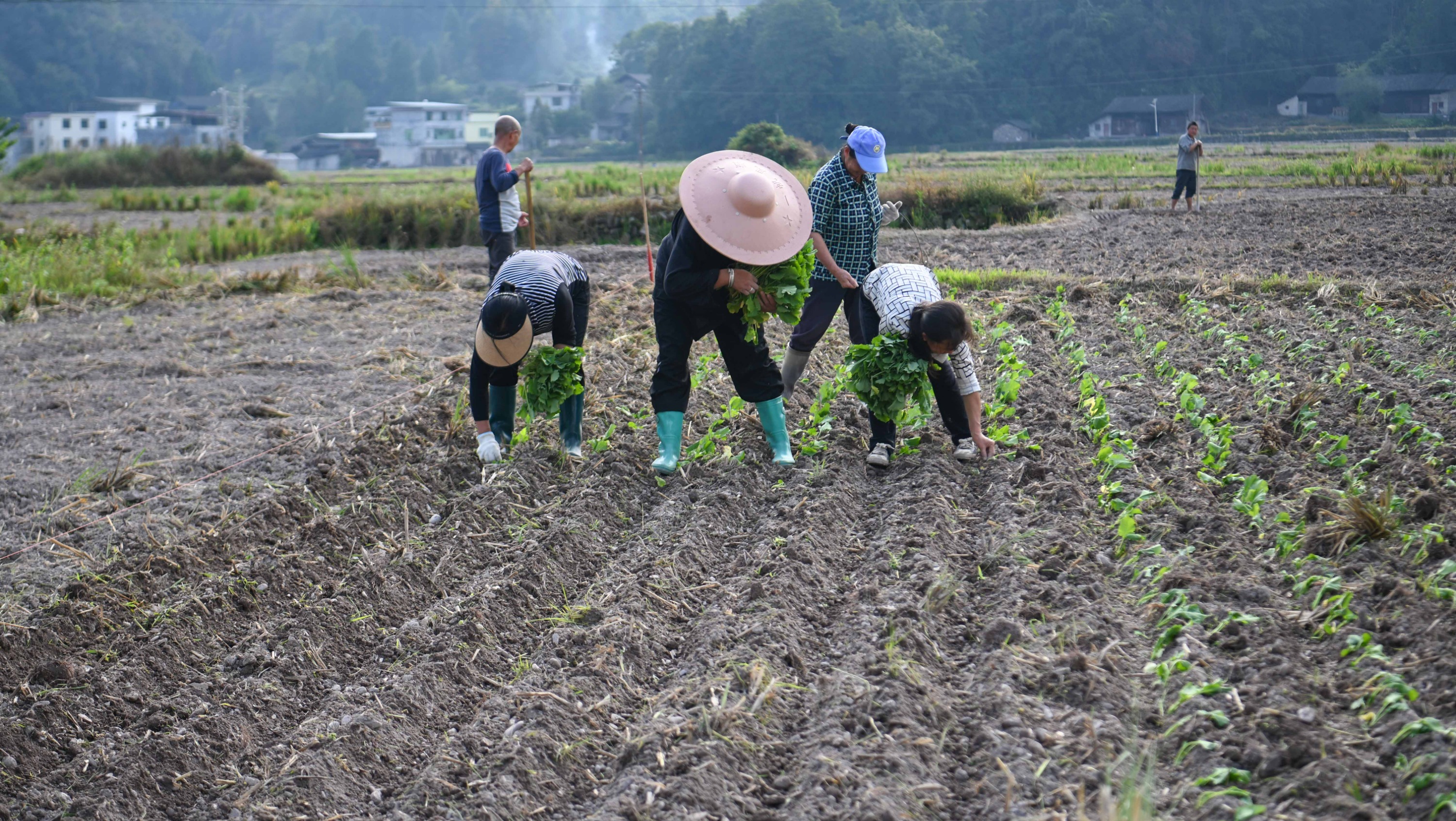 “嬢,你这个油菜有点栽稀了,按我们农业技术专家指导的,株距是30公分、行距是40公分,我们这样栽是为了提高产量,计划提高的亩产产量要达到250公斤以上”寨英镇农业服务中心主任罗勇指导村民移栽油菜。