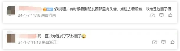 许多网友看到这一话题后表示自己也遇到过类似情况,有网友表示:“有时候看到朋友圈那里有头像,点进去看没有,以为是他删了呢”“我一直以为是发了又秒删了”。