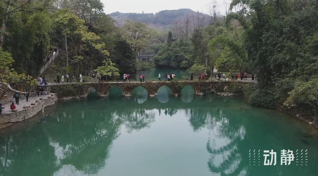 不知不觉,2023年已经结束,忙碌了一整年的你,或许需要一个放松身心的好去处。荔波县小七孔景区内的卧龙潭,在冬日暖阳的照射下,格外清澈透明,如一块蓝绿色的宝石。游客行走在景区内,感受大自然的鬼斧神工。