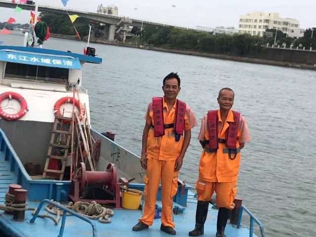 李达星和苏细洪都是市属国企东实城服公司东江河、运河市区段保洁项目的环卫工人。这天,他们与往常工作一样进行水上保洁作业。当驾驶船只至曲海大桥一带时,他们突然听到附近传来几声急促的呼救声。