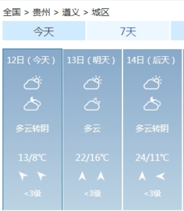 13日夜间到14日白天,多云间阴天有分散阵雨或雷雨;