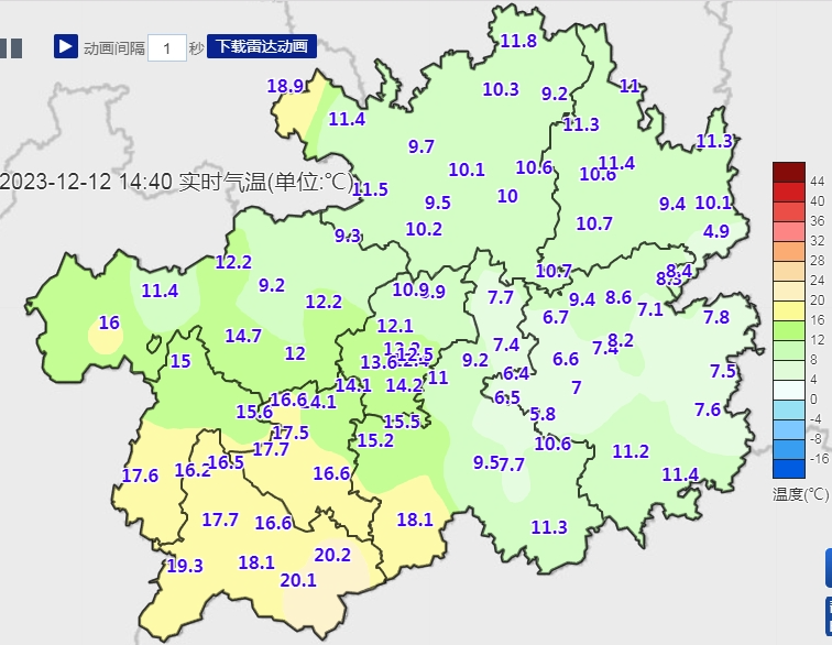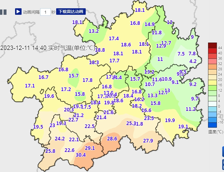 14日夜间到15日白天,省的西南部地区多云,北部阴天有小雨,其余地区多云转阴天有阵雨或雷雨,中北部和东部气温下降6-16℃,局地降幅超过18℃。