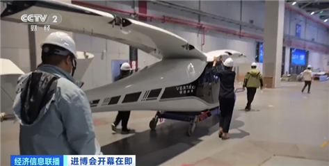 第七届进博会将于11月5日至10日在上海举办,目前,进博会各大展馆的布展进入冲刺阶段。10月30日,汽车馆迎来了展品进馆高峰,其中包括本届进博会的最大展品——一架载人电动垂直起降飞行器。