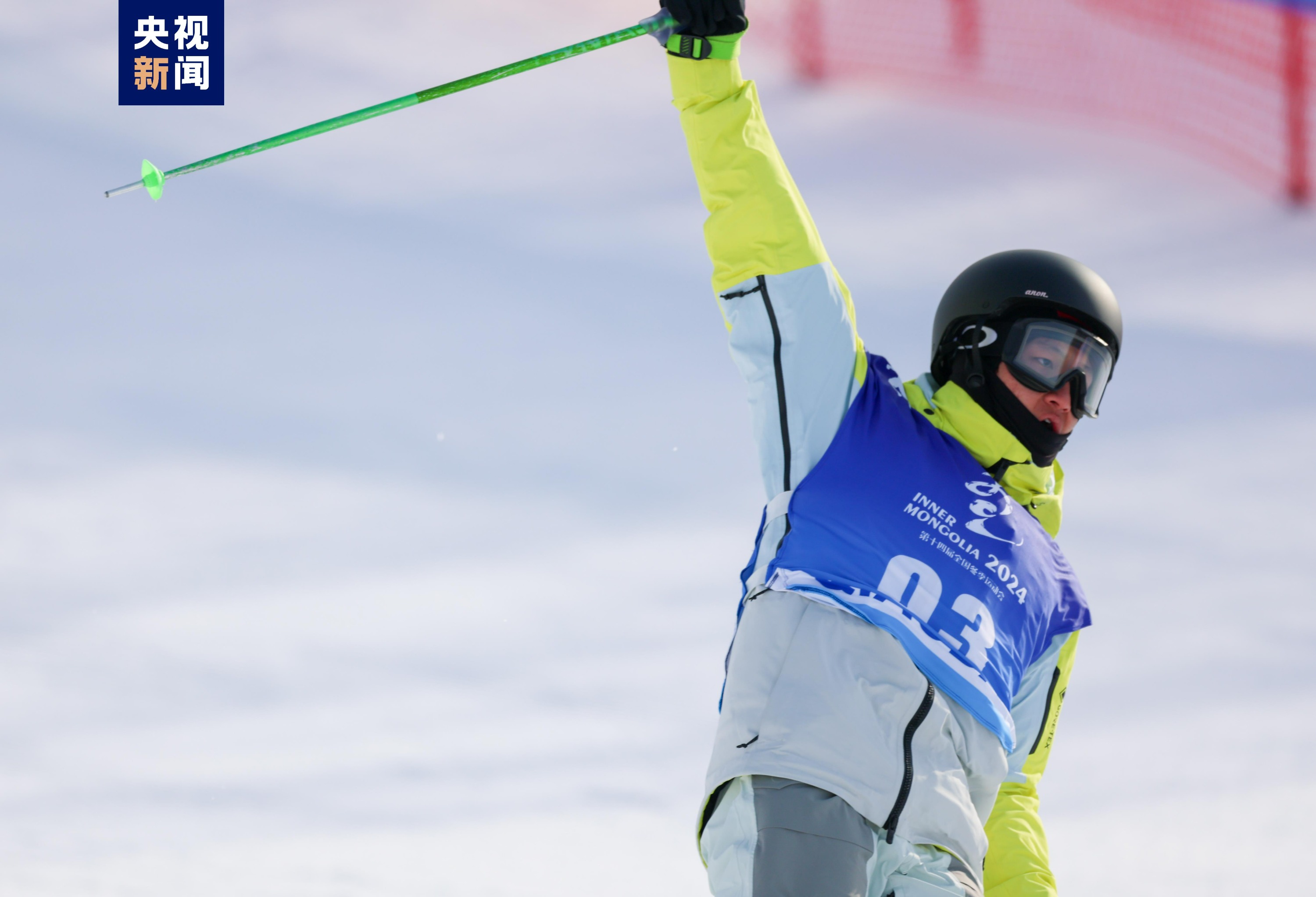 在自由式滑雪大跳台公开组比赛中,运动员们不畏严寒、挑战自我,从斜坡滑下冲上跳台,在跳台尾端依靠惯性腾空的同时,表演空翻、回转等空中绝技,用激情、意志和勇气生动诠释了竞技体育的魅力。