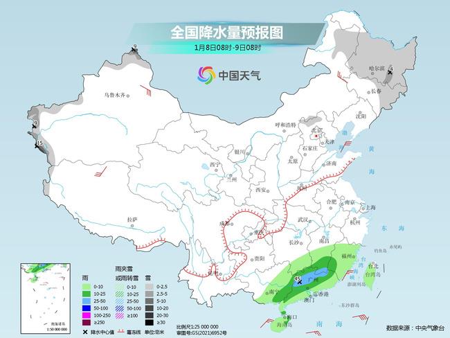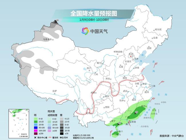 今明两天(1月8日至9日),我国大部地区降水较为稀少,新疆北部仍有持续性降雪,而南方的雨水主要集中在广东、海南等地。气温方面,预计今天,我国多地气温继续加码,武汉、长沙等地最高气温或达20℃,但昼夜温差较大,需注意防寒保暖。