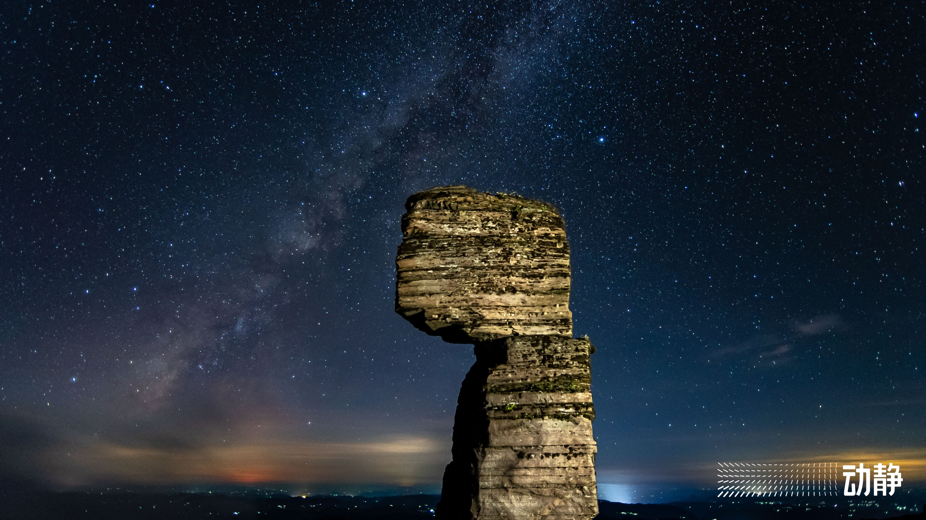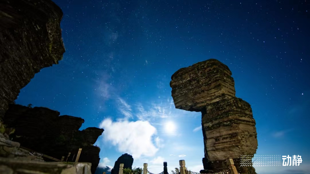这是纪录片《梵净山》摄制组,依托红云金顶拍摄的星空视频截图。深邃苍穹,密布璀璨星辰,如梦如幻,无边无际......