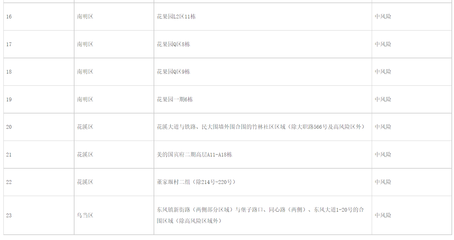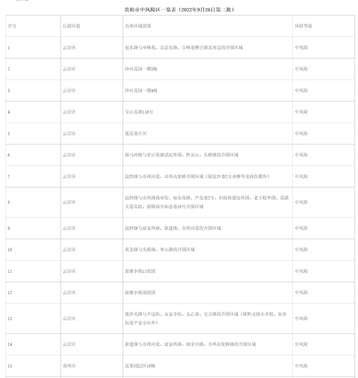 2.贵阳市中风险区一览表(2022年9月26日第二批)