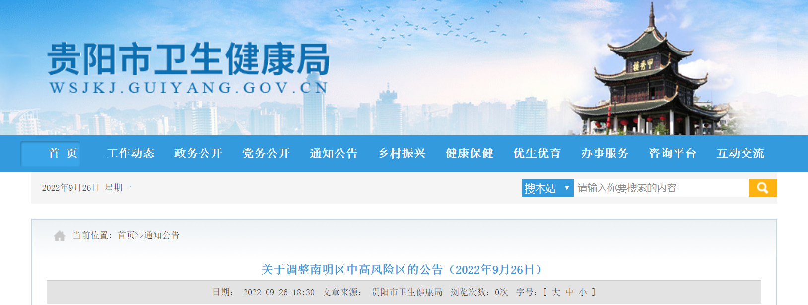 根据当前疫情防控形势,为快速有效阻断疫情传播,实现科学精准防控,切实保障辖区内群众生命安全和身体健康,逐步有序恢复正常生产生活秩序,按照《新型冠状病毒肺炎防控方案(第九版)》《贵阳市高风险区疫情防控攻坚指导方案》相关要求,经专家组研判,自9月27日0时起,将南明区中高风险区调整如下: