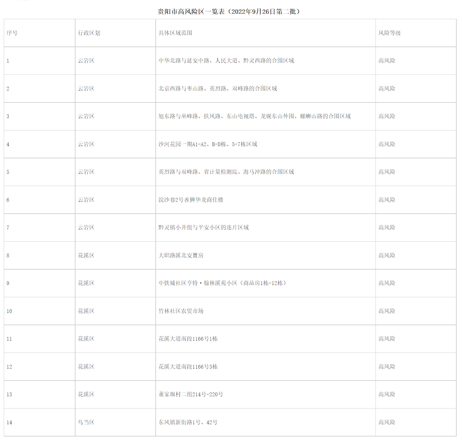 1.贵阳市高风险区一览表(2022年9月26日第二批)