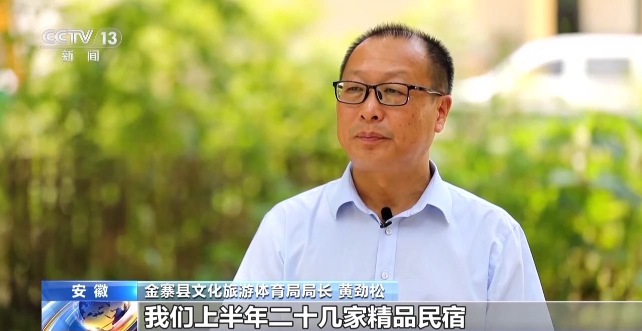 安徽省金寨县文化旅游体育局局长 黄劲松:上半年,我们二十几家精品民宿接待游客就达到6万人次,创营业收入是2500多万元,同时也带动了农产品销售1000多万元,让更多的群众增加收入。